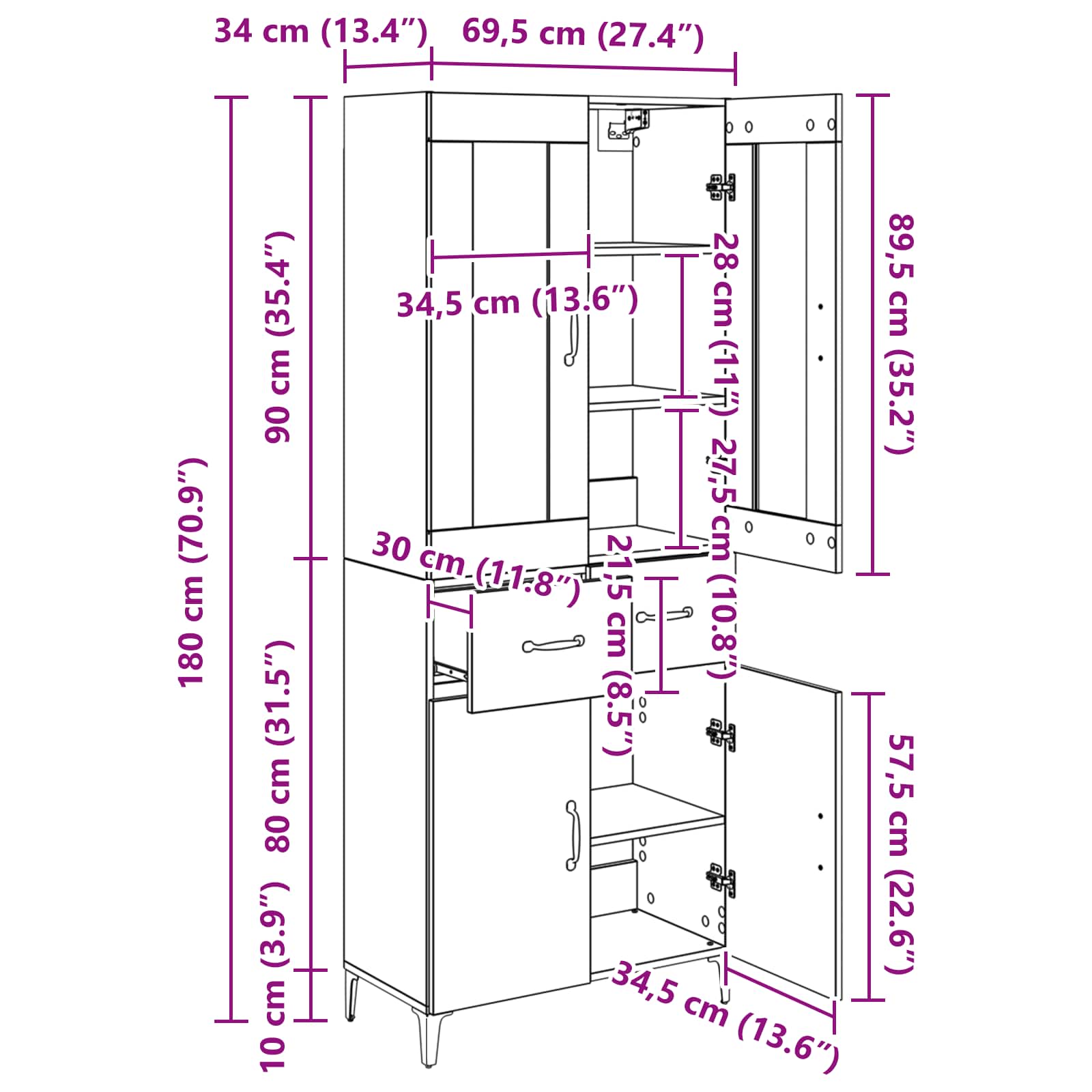 - Algemene afmetingen: 69,5 x 34 x 180 cm (L x B x H)
