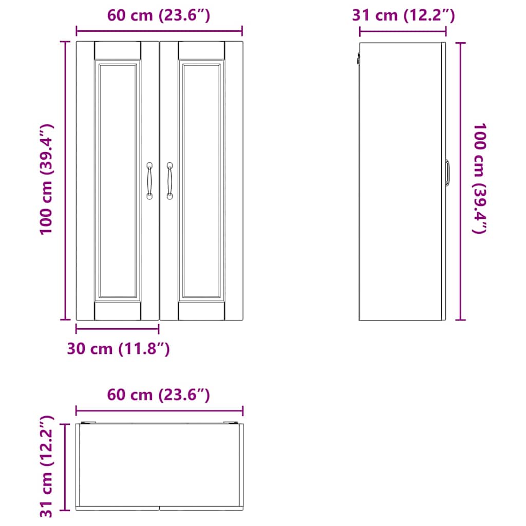 - Algemene afmetingen: 60 x 31 x 100 cm (L x B x H)