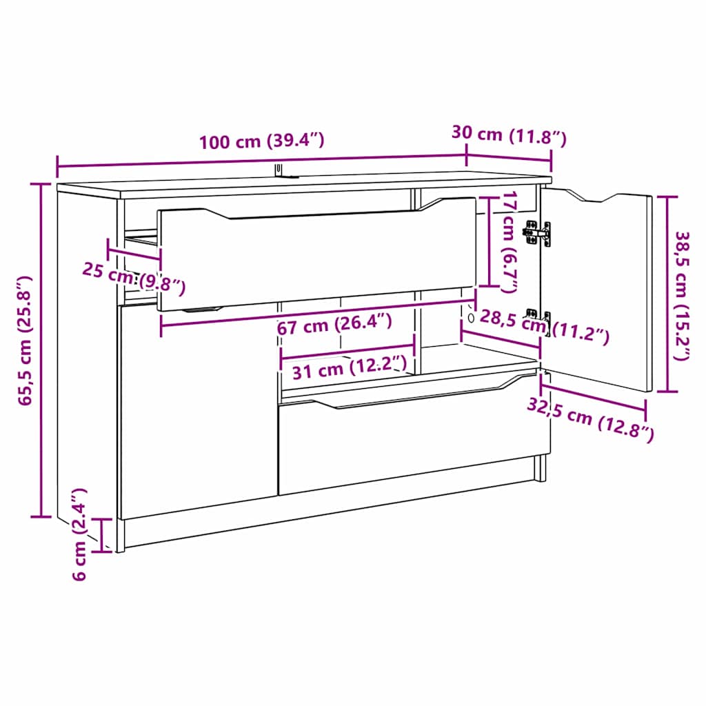 - Algemene afmetingen: 65,5 x 30 x 100 cm (L x B x H)
