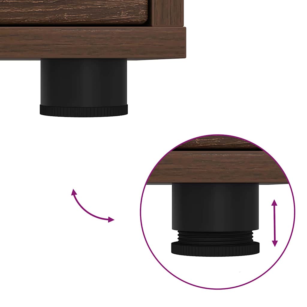 - Materialen: Gemaakt van hoogwaardig geengineerd hout, dit meubel is duurzaam en ziet er stijlvol uit. Het materiaal is vochtregulerend, waardoor het zijn strakke look behoudt, zelfs bij vochtige omstandigheden. De constructie zorgt ook voor stabiliteit, zodat het verschillende systemen en accessoires kan dragen.