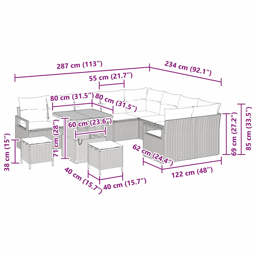 - Inclusief Onderdelen: De set komt met comfortabele buitenkussens van weerbestendige stof, een stijlvolle rugleuning die elke kant van de set mooi laat uitkomen, en een poly rattan rugleuning voor goede ondersteuning. Ook de platte armleuningen zorgen voor een fijn zitcomfort.