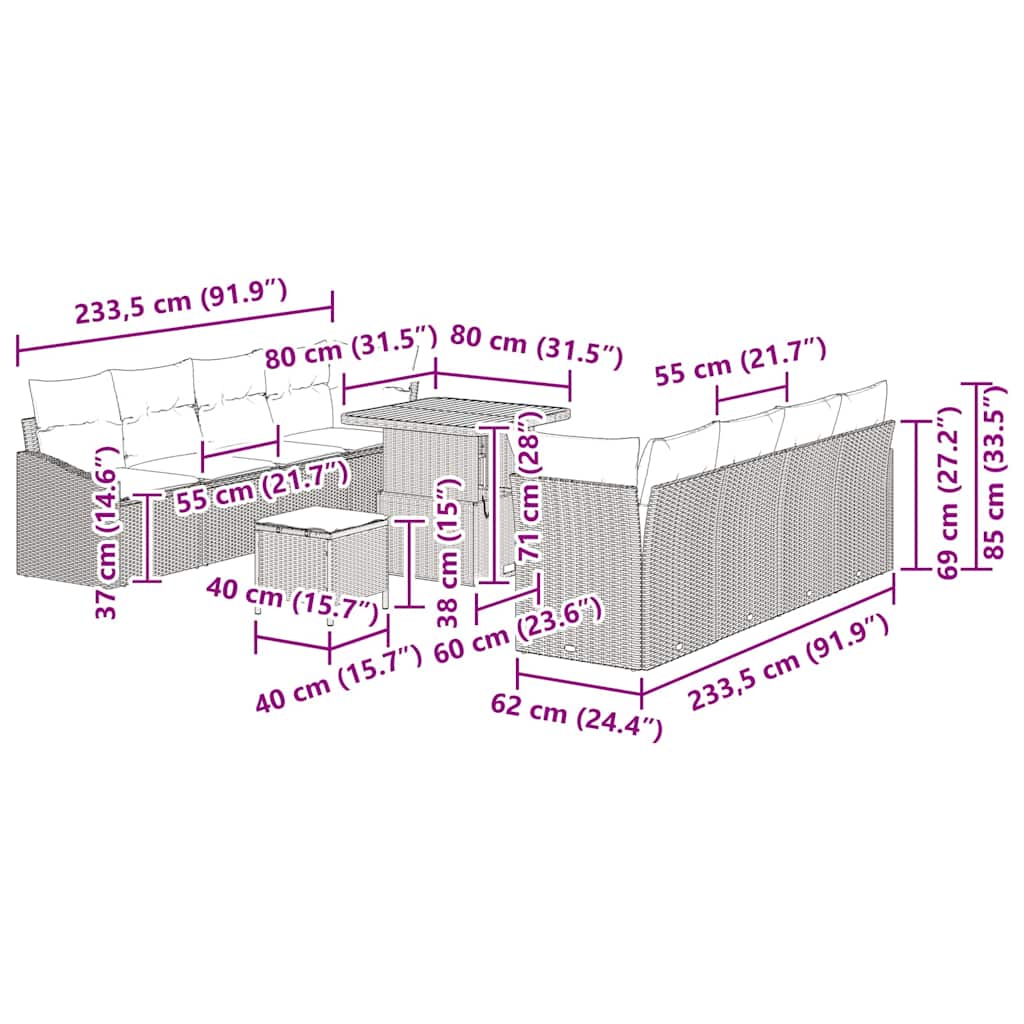 Deze modulaire buitenbank-set met tafel en krukken draait helemaal om moderne stijl en buitenplezier, fijn voor een chillplek op je terras. De rechthoekige vorm en geweven structuur passen perfect bij de buitenomgeving. Ideaal voor iedereen die van zijn tuin houdt, biedt deze set een chique en flexibele optie voor zitten.