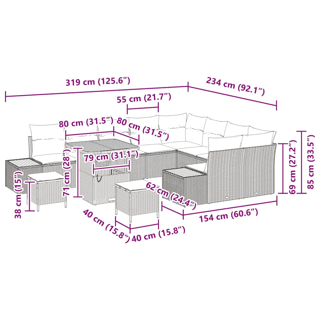 Deze rechthoekige eetset voor 12 personen combineert moderne stijl met praktische bruikbaarheid. Het is perfect om te relaxen en te dineren in elke tuin of op elk terras. De geweven textuur en het strakke design maken het een echte eyecatcher die zowel comfort als een chique uitstraling biedt voor bijeenkomsten en relaxmomenten.