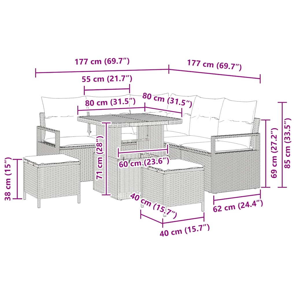 - Eenvoudig Onderhoud: Houd de set er fris uitzien door de kussens binnen te leggen als het weer om slaat en gebruik een hoes als je er niet op zit. Veeg gewoon de oppervlakken af met een vochtige doek om stof te verwijderen en het er jarenlang goed uit te laten zien.