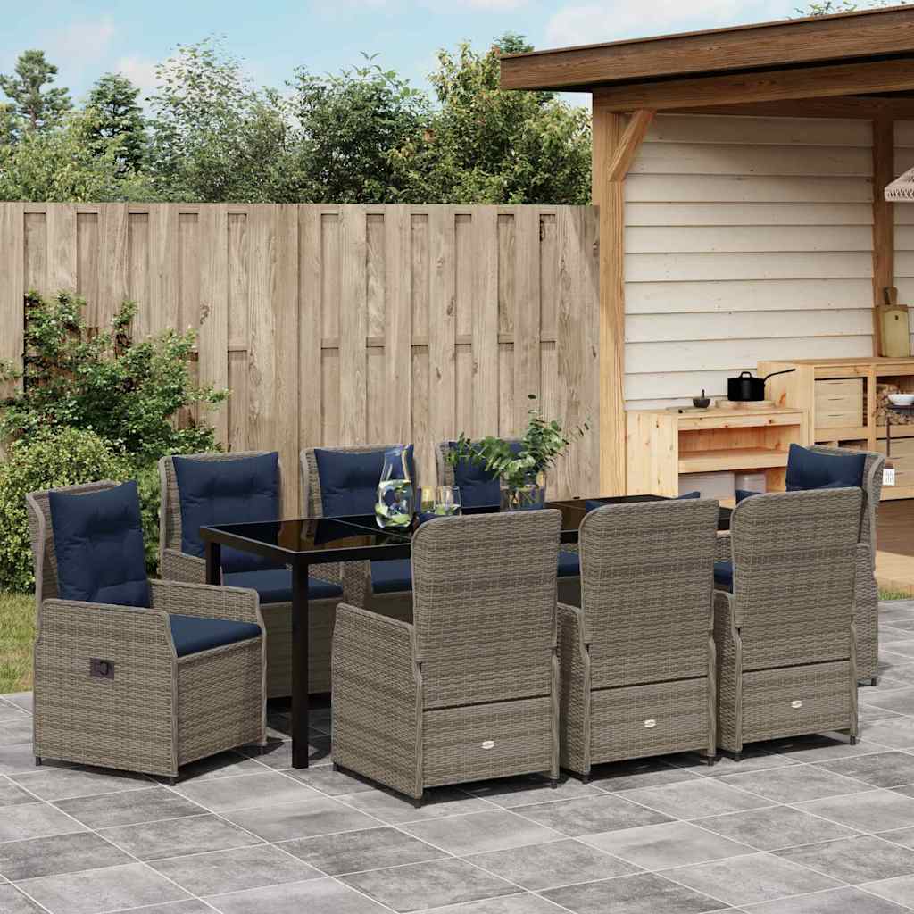 Deze Poly Rattan Tuin Eetset voegt moderne klasse toe aan je buitenruimte, ideaal voor zomerse bijeenkomsten. Met zijn strakke lijnen en trendy geweven textuur geeft deze set een vleugje verfijning aan elke tuin of terras. Perfect voor iedereen die op zoek is naar een stijlvolle en praktische aanvulling voor hun buitenplek, en biedt je de ideale plek om te eten en met vrienden te relaxen.