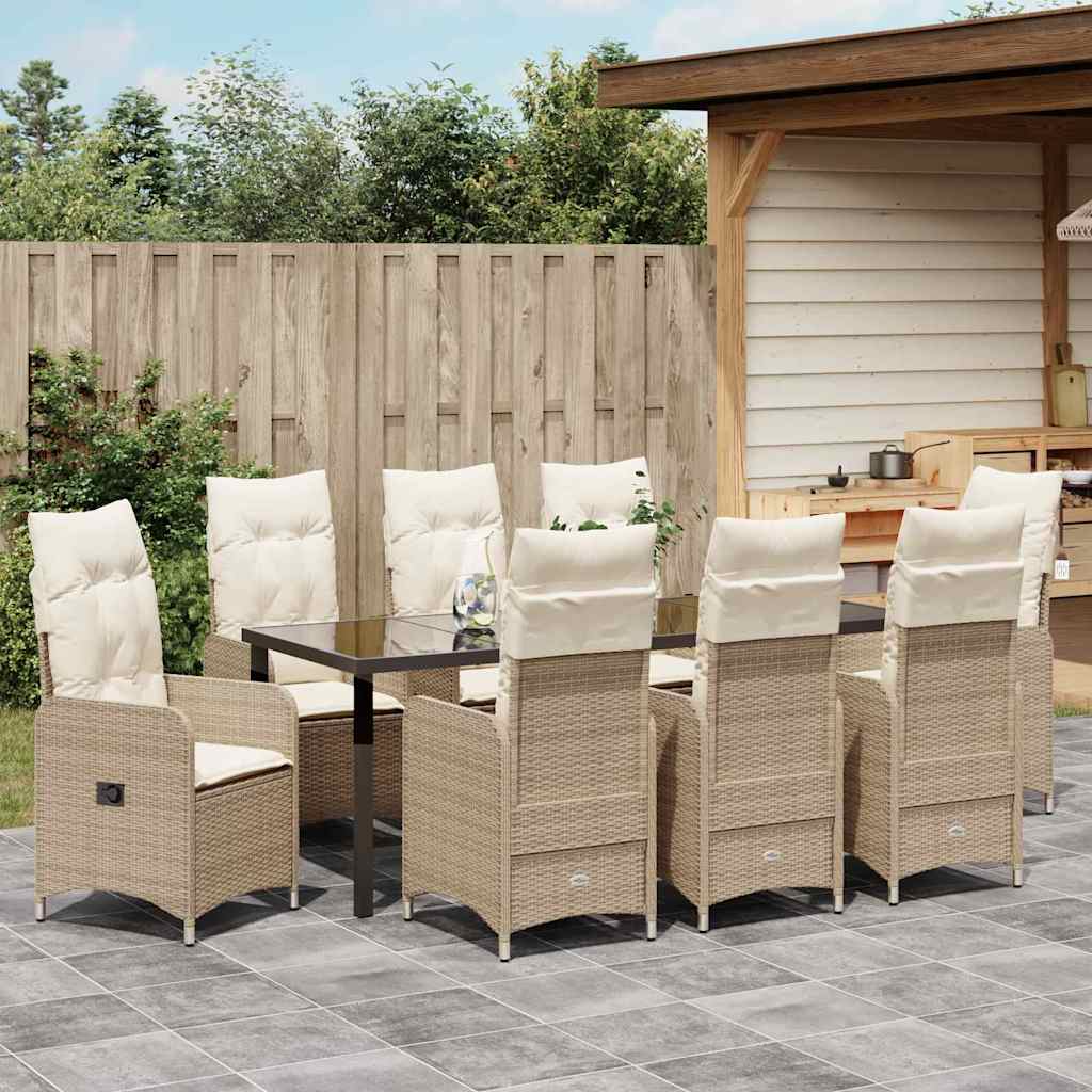- Hoogwaardige materialen: Deze eetset is gemaakt van poly rattan, gehard glas en gepoedercoat staal, wat zorgt voor een perfecte mix van stijl en stevig materiaal. Het poly rattan maakt de moderne look compleet en biedt UV-bescherming, zodat alles er lang mooi uit blijft zien. Het gepoedercoat staal zorgt voor de sterke basis, zodat de set lang meegaat in je tuin.