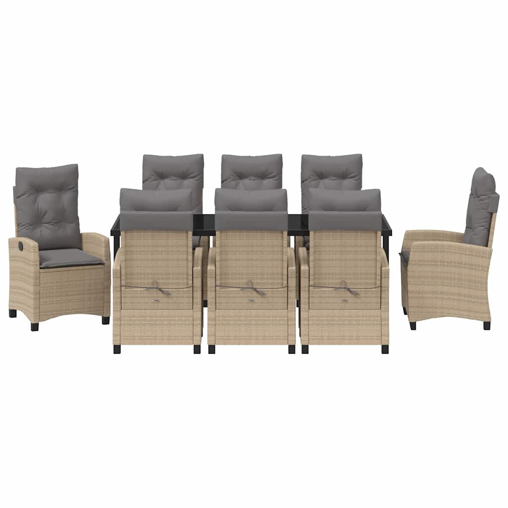- Materialen: Gemaakt van poly rattan en sterk staal, wat deze eetset duurzaam en elegant maakt. Poly rattan biedt natuurlijke bescherming tegen UV-straling en weersomstandigheden, perfect voor zonnige plekken, terwijl het stalen frame zorgt voor stevigheid en stabiliteit voor jarenlang gebruik.