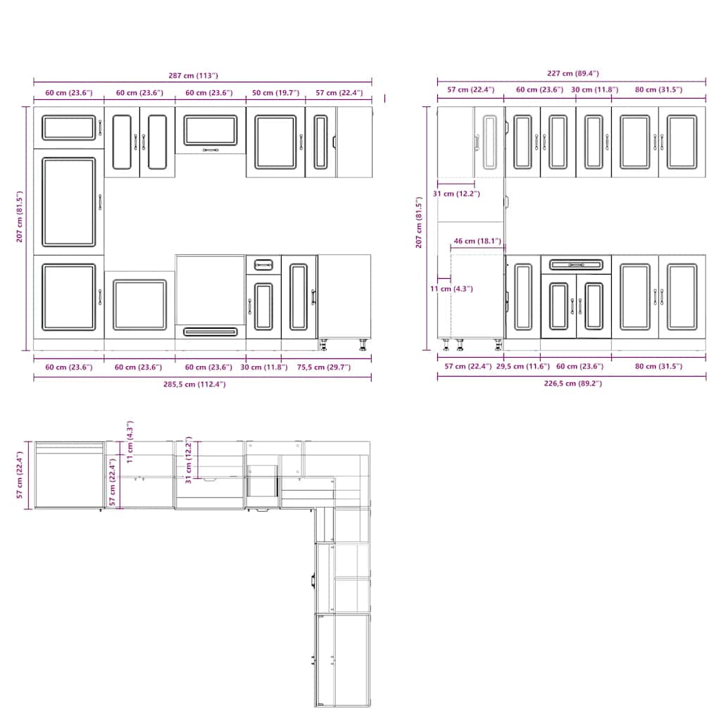 - Ruime opbergruimte: De keukenkastenset heeft veel vakken en biedt voldoende ruimte om kommen, borden, potten en andere keukenapparatuur op te bergen.