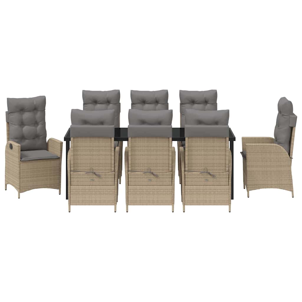 Deze Moderne Tuinset is perfect om je patio, veranda of tuin te verfraaien met zijn strakke en minimalistische uitstraling. Ontworpen voor de zomer, biedt de set eenvoud en functionaliteit door een mooie mix van poly rattan, glas en staal. De geweven poly rattan voegt elegantie en tijdloze stijl toe aan je buitenruimte, terwijl het stevige stalen frame garant staat voor een set die geweldig is voor buiten dineren en feesten. Perfect voor buitengebruik, creëert het een fijne sfeer voor dineren onder de sterren, ideaal voor familiebijeenkomsten of gezellige avonden met vrienden.