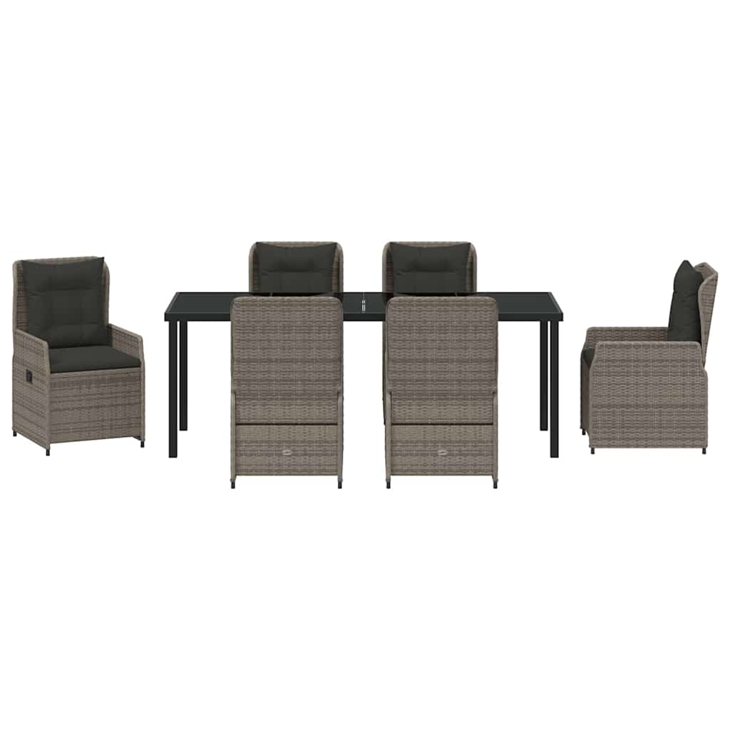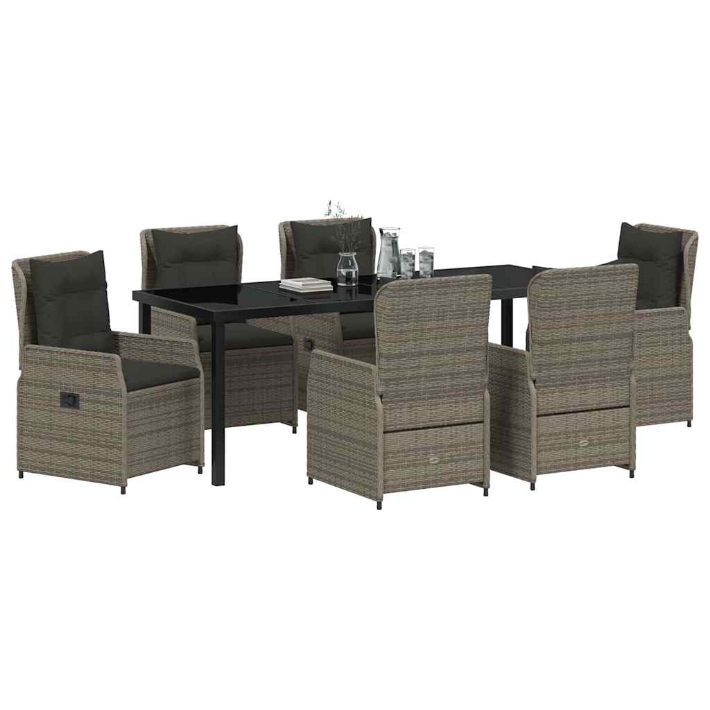 Deze moderne tuinset voor buiten biedt de perfecte mix van stijl en functionaliteit. Met strakke lijnen en een slanke uitstraling is het een geweldige aanvulling op je tuin of terras, of het nu voor een gezinsbijeenkomst of een intiem diner is. Gemaakt van poly rattan, dat niet alleen goed aanvoelt maar ook een mooie uitstraling heeft. Verhoog je eetervaring buiten dankzij het moderne design, dat ook functioneel is.