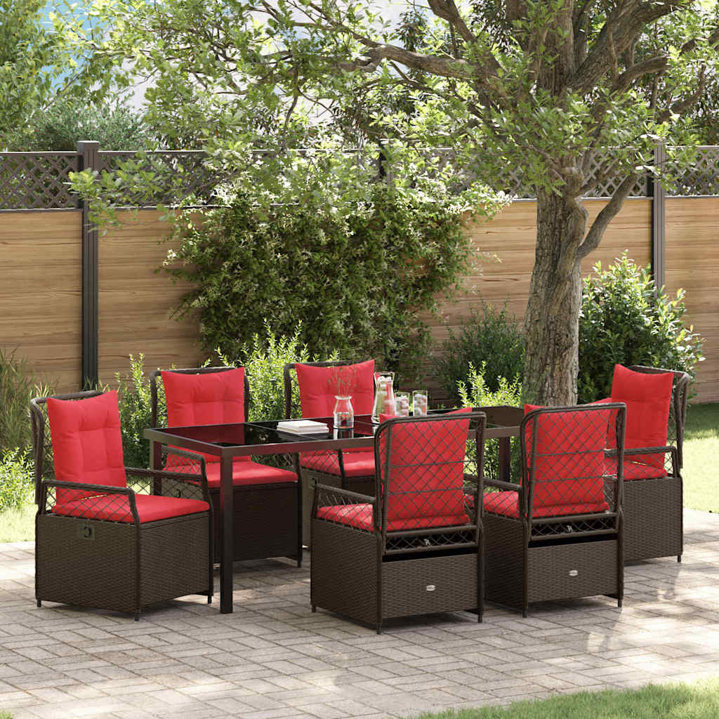 - Kwaliteitsmaterialen: Deze tuin eettafel set combineert poly rattan en staal in een elegant, modern design. Het poly rattan zorgt voor een natuurlijke look en biedt tegelijkertijd goede bescherming tegen vocht en UV-stralen.