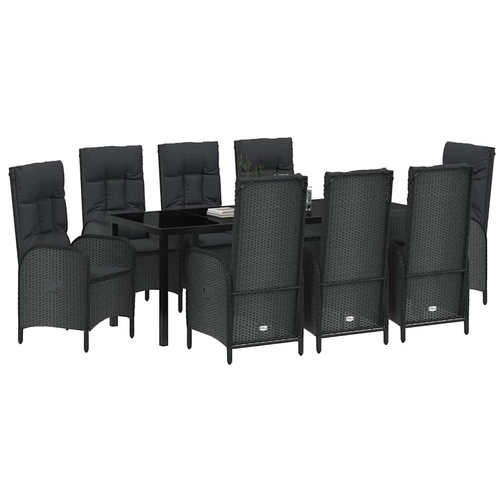 - Inclusief componenten: De set bevat alles wat je nodig hebt voor een geweldige eetervaring buiten. Met een ruime tafel en comfortabele kussens is het perfect voor een ontspannen sfeer. Het poly rattan biedt goede ondersteuning en de stalen frames zorgen voor stevigheid.
