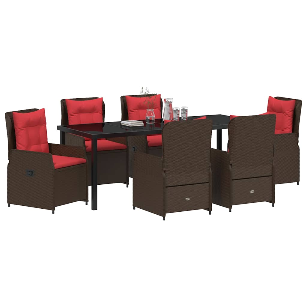 Deze Poly Rattan Tuin Eetset voegt moderne klasse toe aan je buitenruimte, ideaal voor zomerse bijeenkomsten. Met zijn strakke lijnen en trendy geweven textuur geeft deze set een vleugje verfijning aan elke tuin of terras. Perfect voor iedereen die op zoek is naar een stijlvolle en praktische aanvulling voor hun buitenplek, en biedt je de ideale plek om te eten en met vrienden te relaxen.