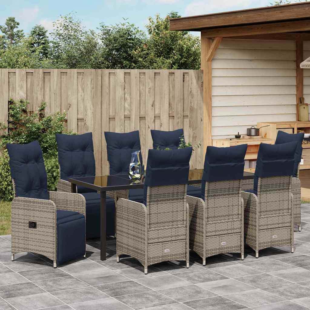 - Inclusief componenten: De set bevat een rechthoekige eetkamertafel en stoelen, die allemaal zijn voorzien van kussens met een handige rits voor makkelijk onderhoud. De armleuningen en ergonomische rugleuningen die in meerdere posities verstelbaar zijn, zorgen voor extra comfort, en de poedercoating verhoogt zowel de duurzaamheid als de uitstraling van de set. Elk onderdeel is slim ontworpen om buiten te genieten en te dineren.