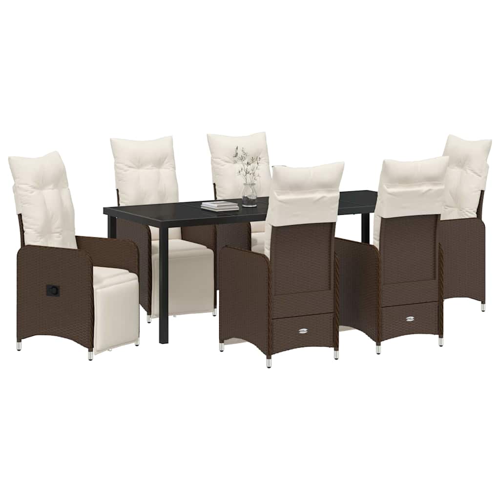 - Hoogwaardige materialen: Deze eetset is gemaakt van poly rattan, gehard glas en gepoedercoat staal, wat zorgt voor een perfecte mix van stijl en stevig materiaal. Het poly rattan maakt de moderne look compleet en biedt UV-bescherming, zodat alles er lang mooi uit blijft zien. Het gepoedercoat staal zorgt voor de sterke basis, zodat de set lang meegaat in je tuin.
