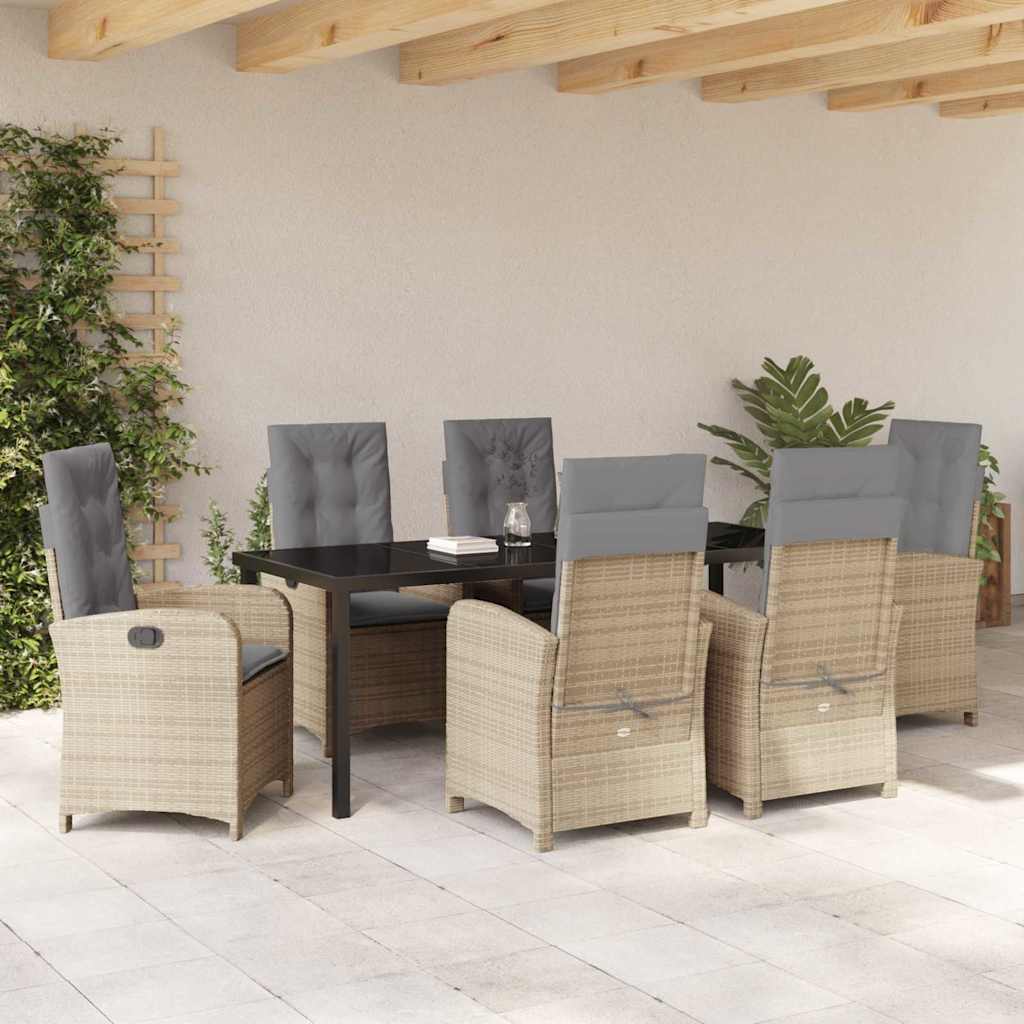 Deze moderne tuin dining set is simpel en functioneel, een uitstekende keuze voor je tuin of terras. Het heeft strakke lijnen en een minimalistisch ontwerp dat perfect past in elke moderne setting. Met comfy kussens en een stevig frame kun je heerlijk relaxen of fijne bijeenkomsten houden. Het is de perfecte mix van stijl en praktische gebruik voor elke buitenruimte.