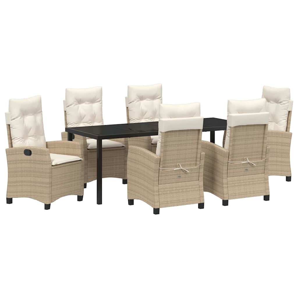 - Materialen: Gemaakt van poly rattan en sterk staal, wat deze eetset duurzaam en elegant maakt. Poly rattan biedt natuurlijke bescherming tegen UV-straling en weersomstandigheden, perfect voor zonnige plekken, terwijl het stalen frame zorgt voor stevigheid en stabiliteit voor jarenlang gebruik.