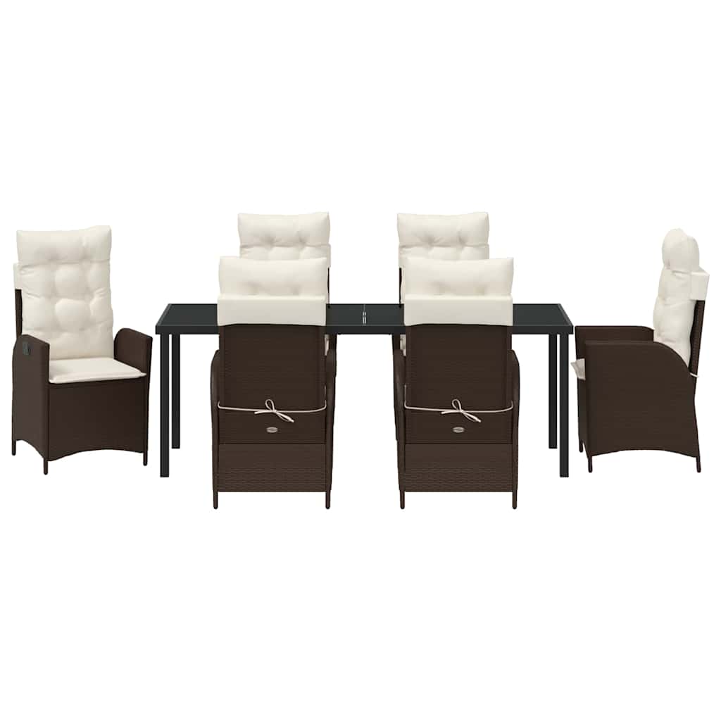 Deze Moderne Tuinset is perfect om je patio, veranda of tuin te verfraaien met zijn strakke en minimalistische uitstraling. Ontworpen voor de zomer, biedt de set eenvoud en functionaliteit door een mooie mix van poly rattan, glas en staal. De geweven poly rattan voegt elegantie en tijdloze stijl toe aan je buitenruimte, terwijl het stevige stalen frame garant staat voor een set die geweldig is voor buiten dineren en feesten. Perfect voor buitengebruik, creëert het een fijne sfeer voor dineren onder de sterren, ideaal voor familiebijeenkomsten of gezellige avonden met vrienden.