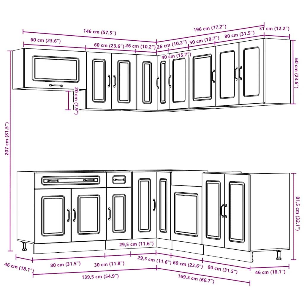 Deze 11-delige kastenset, met eenvoudig ontwerp, optimaliseert je keuken en biedt voldoende opbergruimte voor je persoonlijke spullen!