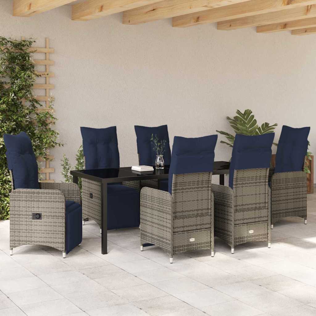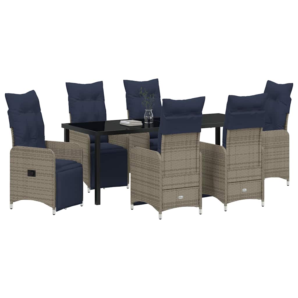 - Inclusief componenten: De set bevat een rechthoekige eetkamertafel en stoelen, die allemaal zijn voorzien van kussens met een handige rits voor makkelijk onderhoud. De armleuningen en ergonomische rugleuningen die in meerdere posities verstelbaar zijn, zorgen voor extra comfort, en de poedercoating verhoogt zowel de duurzaamheid als de uitstraling van de set. Elk onderdeel is slim ontworpen om buiten te genieten en te dineren.