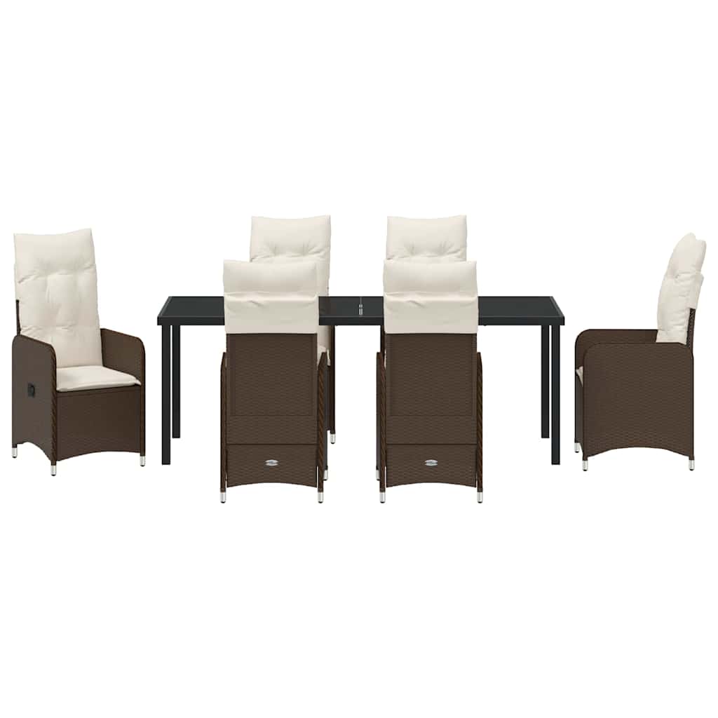- Hoogwaardige materialen: Deze eetset is gemaakt van poly rattan, gehard glas en gepoedercoat staal, wat zorgt voor een perfecte mix van stijl en stevig materiaal. Het poly rattan maakt de moderne look compleet en biedt UV-bescherming, zodat alles er lang mooi uit blijft zien. Het gepoedercoat staal zorgt voor de sterke basis, zodat de set lang meegaat in je tuin.