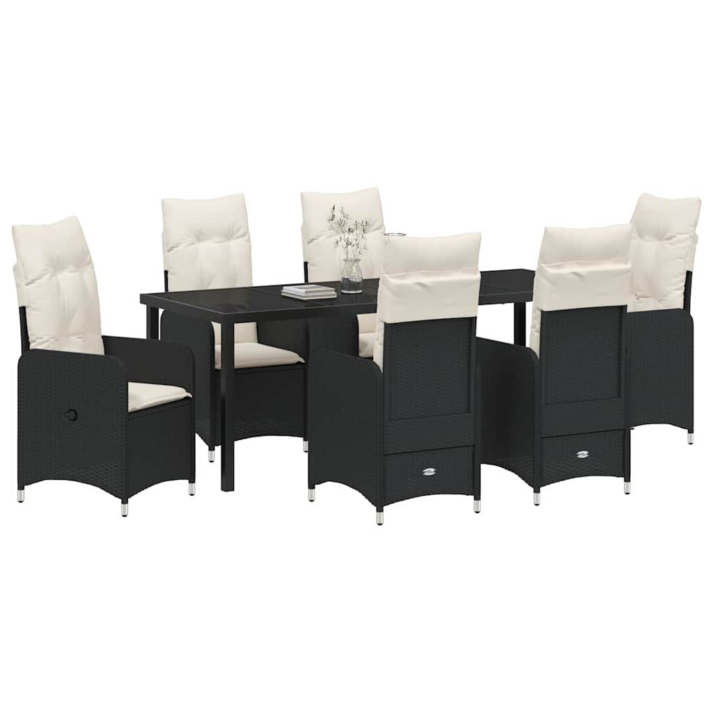 - Hoogwaardige materialen: Deze eetset is gemaakt van poly rattan, gehard glas en gepoedercoat staal, wat zorgt voor een perfecte mix van stijl en stevig materiaal. Het poly rattan maakt de moderne look compleet en biedt UV-bescherming, zodat alles er lang mooi uit blijft zien. Het gepoedercoat staal zorgt voor de sterke basis, zodat de set lang meegaat in je tuin.