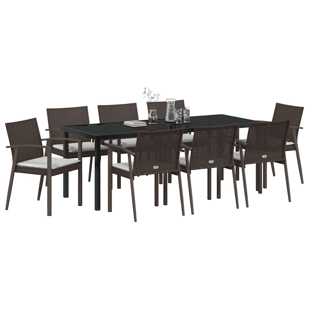 - Materialen: Deze tuin eetset is gemaakt van een mix van PE rattan en staal. PE rattan zorgt voor een comfortabele zitervaring en een stijlvolle look die past bij moderne elegantie. Het staal in het frame en de poten zorgt voor een stevige structuur die weerbestendig is.