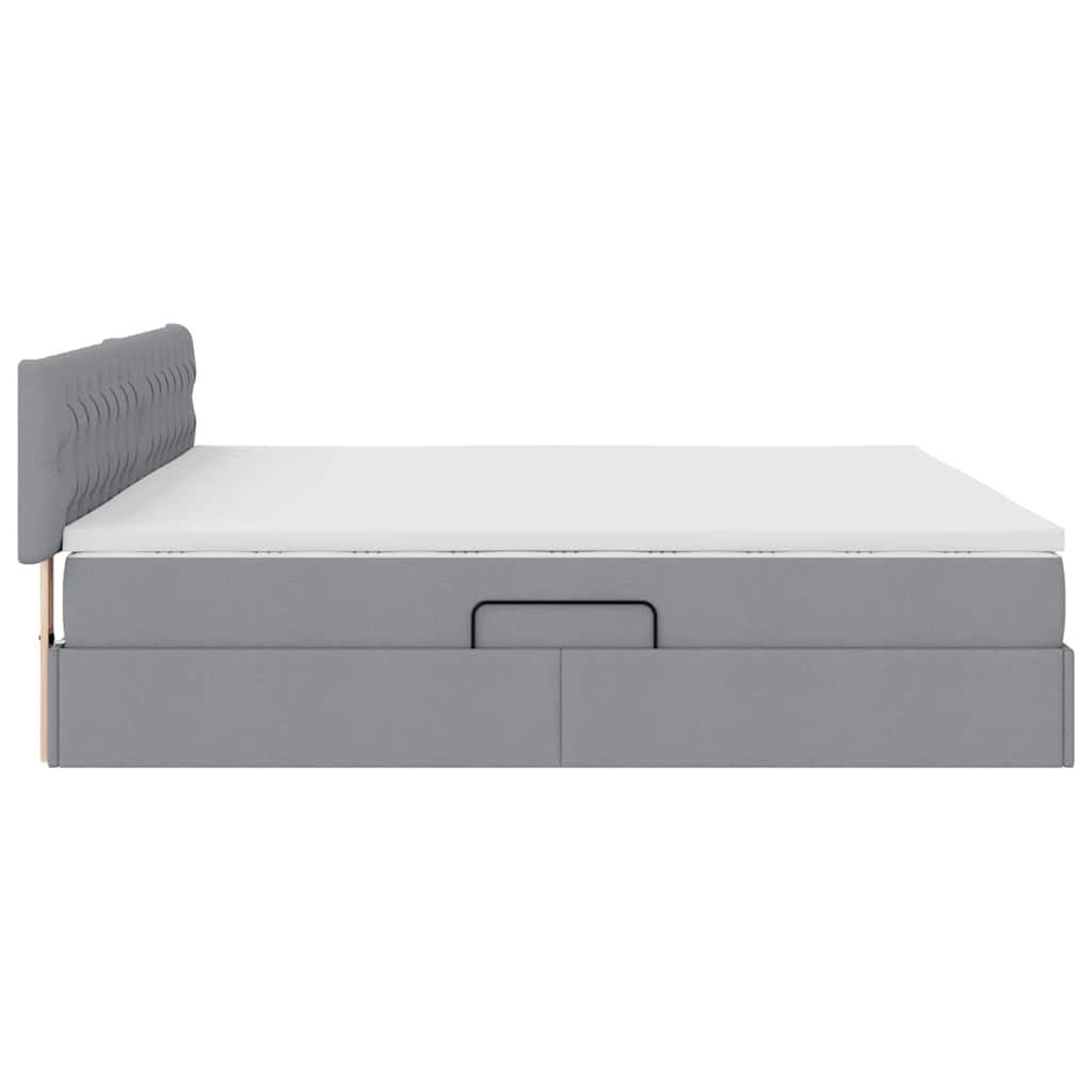 Dit Opbergbed met Matras is een stijlvolle en functionele aanwinst voor iedere slaapkamer. Met zijn strakke lijnen en minimalistische ontwerp, en het geweldige lattenbodem en matras, zit je goed voor comfort. Dit bed is perfect voor moderne interieurs en zorgt niet alleen voor een fraaiere uitstraling maar ook voor extra opbergruimte, speciaal voor wie efficiëntie belangrijk vindt zonder in te boeten op stijl. Dankzij het hydraulische liftsysteem is er veel ruimte onder het bed, waardoor je meer plek in je kamer hebt en je elegantie behoudt zonder rommel.