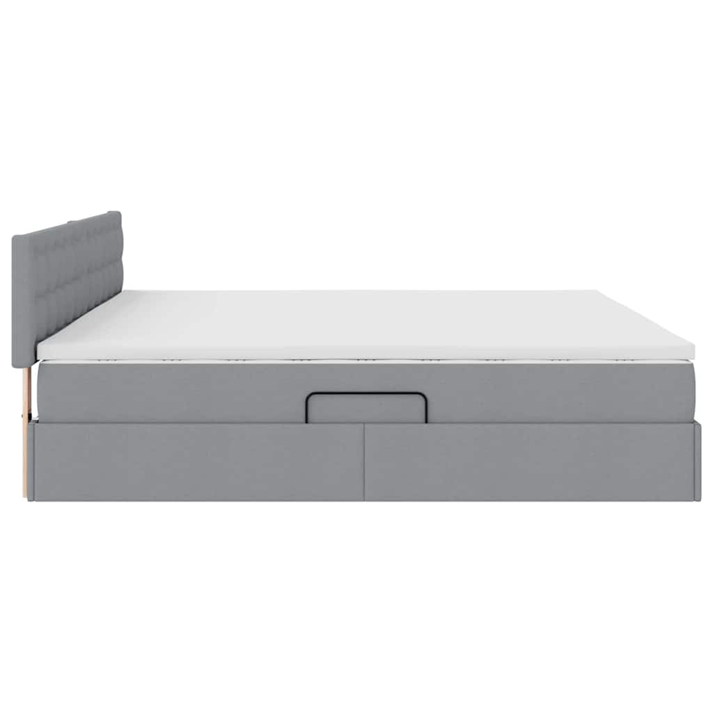 Dit Opbergbed met Matras is een stijlvolle en functionele aanwinst voor iedere slaapkamer. Met zijn strakke lijnen en minimalistische ontwerp, en het geweldige lattenbodem en matras, zit je goed voor comfort. Dit bed is perfect voor moderne interieurs en zorgt niet alleen voor een fraaiere uitstraling maar ook voor extra opbergruimte, speciaal voor wie efficiëntie belangrijk vindt zonder in te boeten op stijl. Dankzij het hydraulische liftsysteem is er veel ruimte onder het bed, waardoor je meer plek in je kamer hebt en je elegantie behoudt zonder rommel.