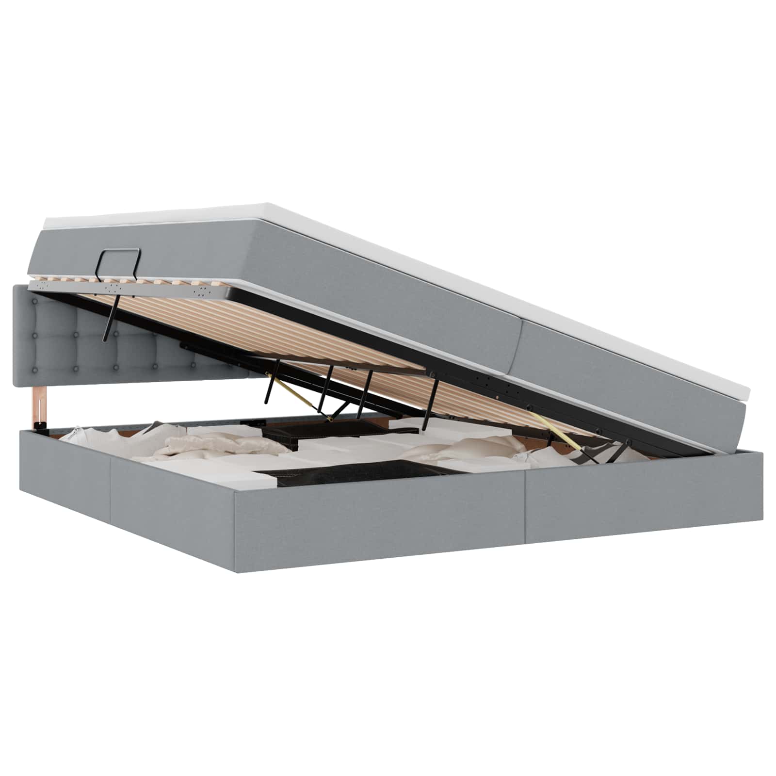 - Hydraulisch liftsysteem: Het bed laten zakken en omhoog tillen gaat soepel, zodat je makkelijk bij de opslagruimte onder het bed kunt. Met een simpele lift aan de zijkant krijg je snel toegang tot ruimte voor seizoensgebonden dekens, kleding of andere spullen. Dit ontwerp is handig voor iedereen die extra opslag kwijt wil.