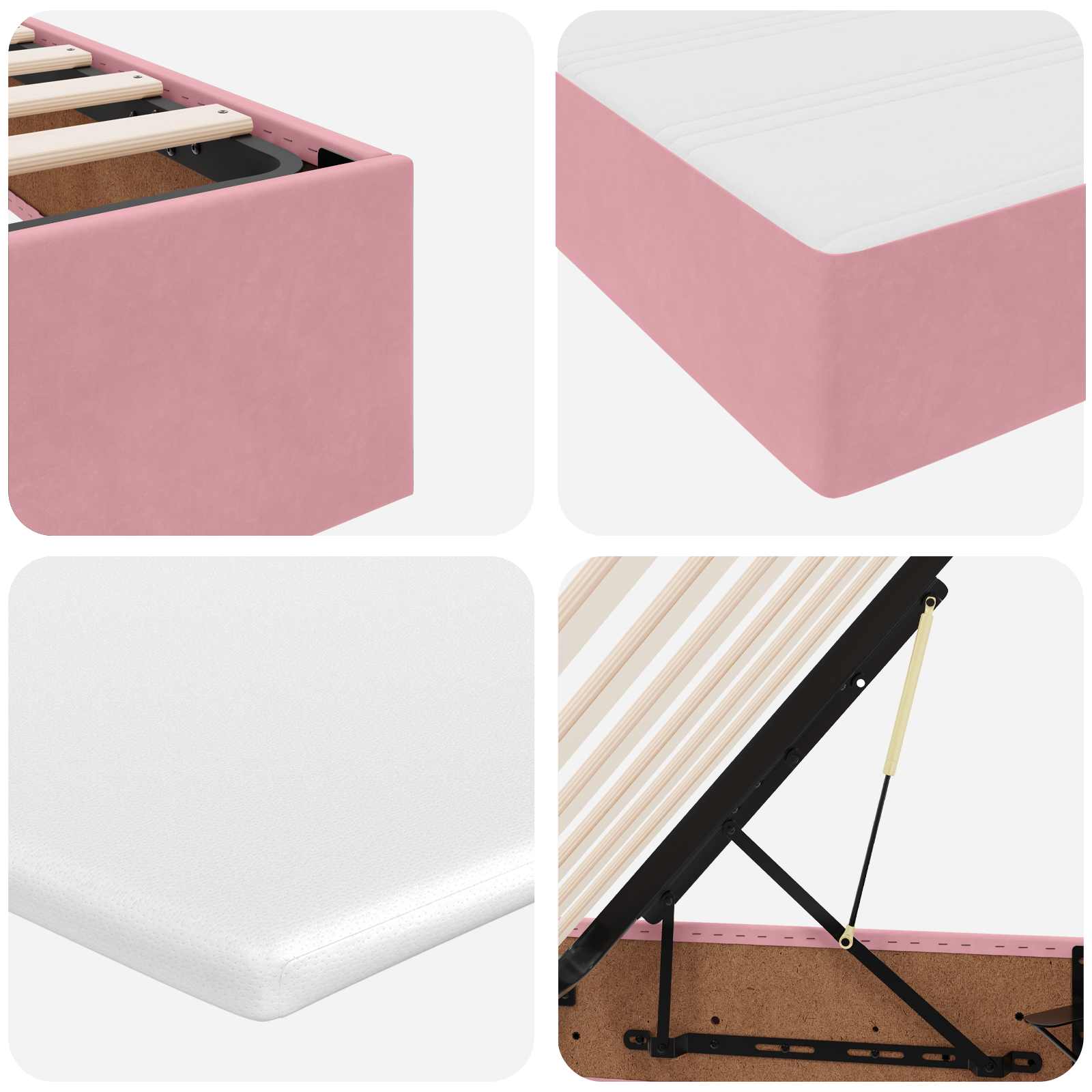 - Hydraulisch Hefmechanisme: Met het hydraulisch hefmechanisme heb je eenvoudig toegang tot de opbergruimte onder het bed. Het werkt soepel en zorgt ervoor dat je moeiteloos de ruimte kunt gebruiken zonder gedoe.