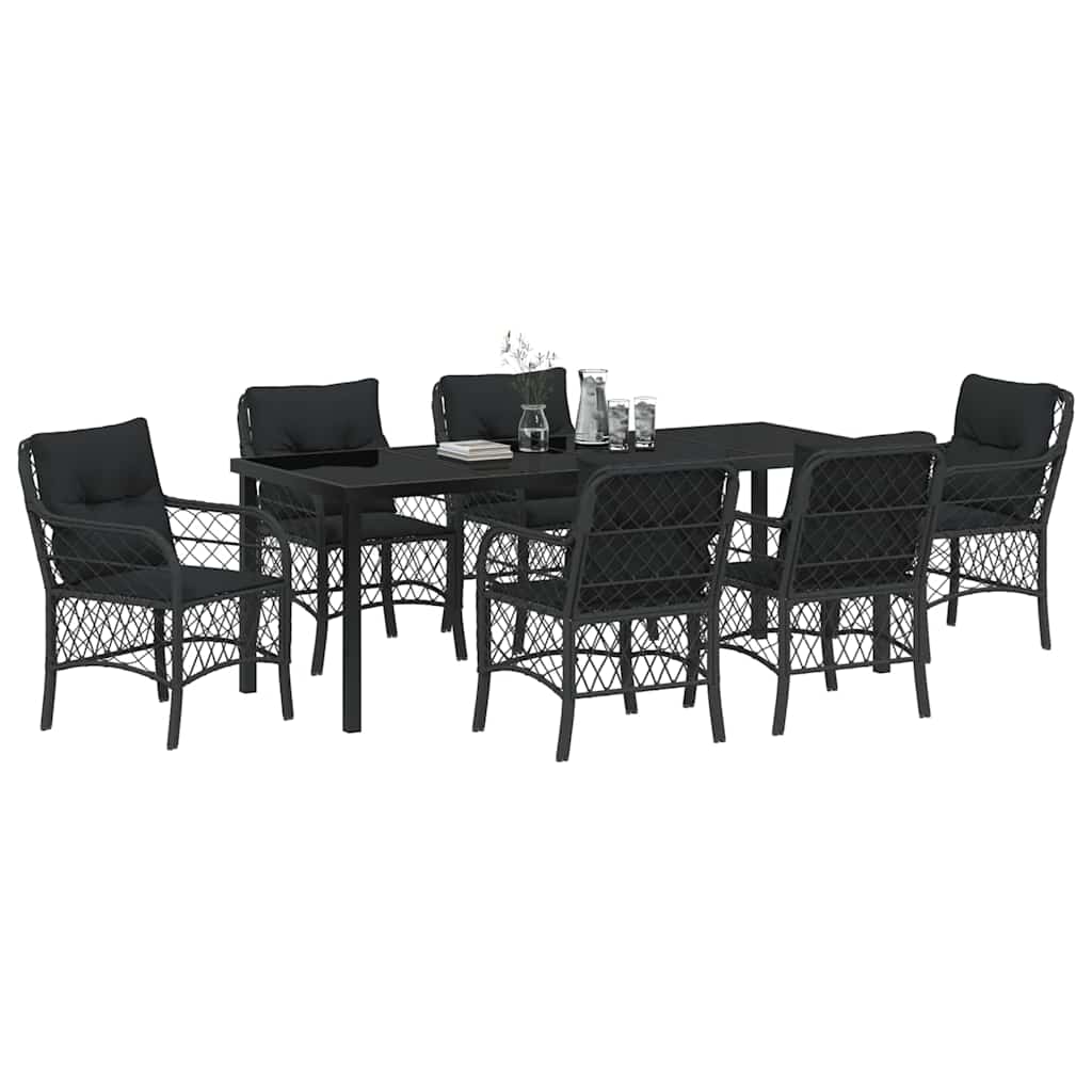 Deze Moderne Tuin Eettafel Set brengt elegantie naar je buitenruimte met zijn poedercoated stalen frame en poly rattan. De minimalistische stijl is perfect voor etentjes in de openlucht. De strakke lijnen maken het een uitnodigende tafel voor gezellige bijeenkomsten met familie en vrienden op zonovergoten terrassen of in je eigen tuin. Met deze set geef je sfeer en functionaliteit een boost, waardoor elke maaltijd buiten speciaal aanvoelt.