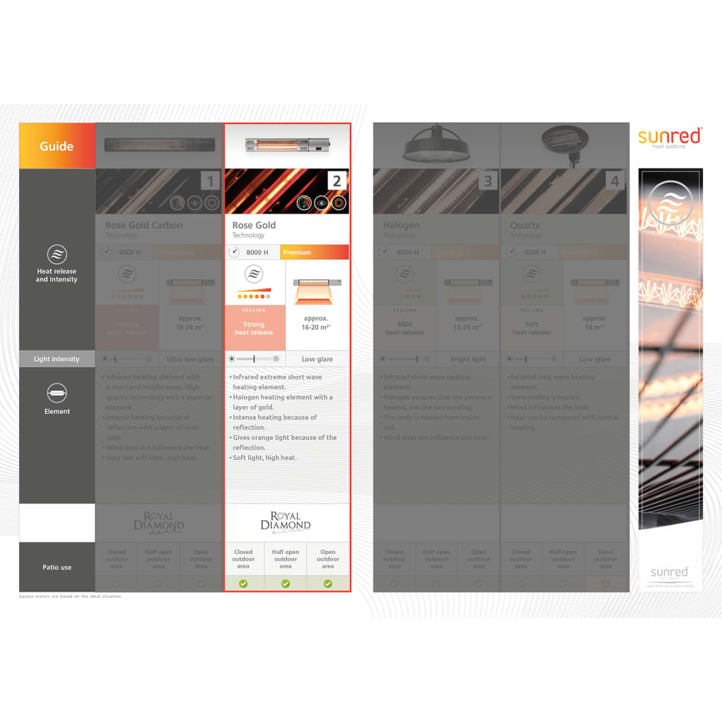 - Praktisch ontwerp: het nieuwe halogeen roségouden infrarood verwarmingselement brengt de warmte-intensiteit naar het hoogste niveau.