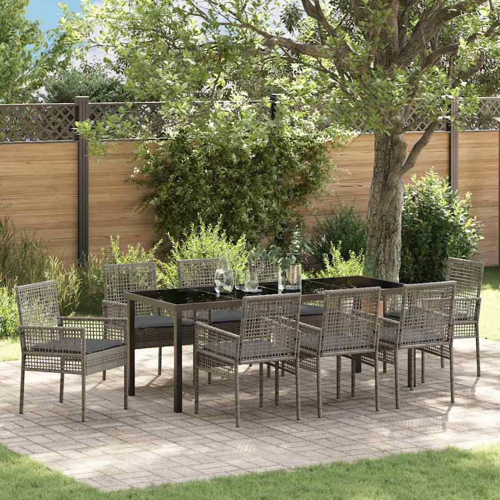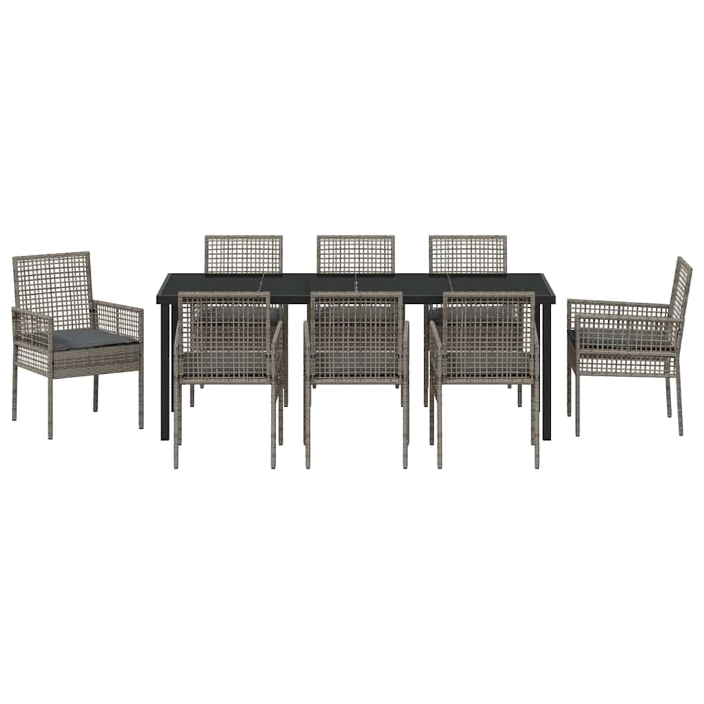 - Complete Componenten: De set heeft een stevig frame van poedercoated staal, wat zorgt voor duurzaamheid. Met poly rattan armleuningen en een tafel van gehard glas is het een praktische en stijlvolle keuze voor je maaltijden. De foamgevulde kussens zorgen voor langdurig comfort als je zit.