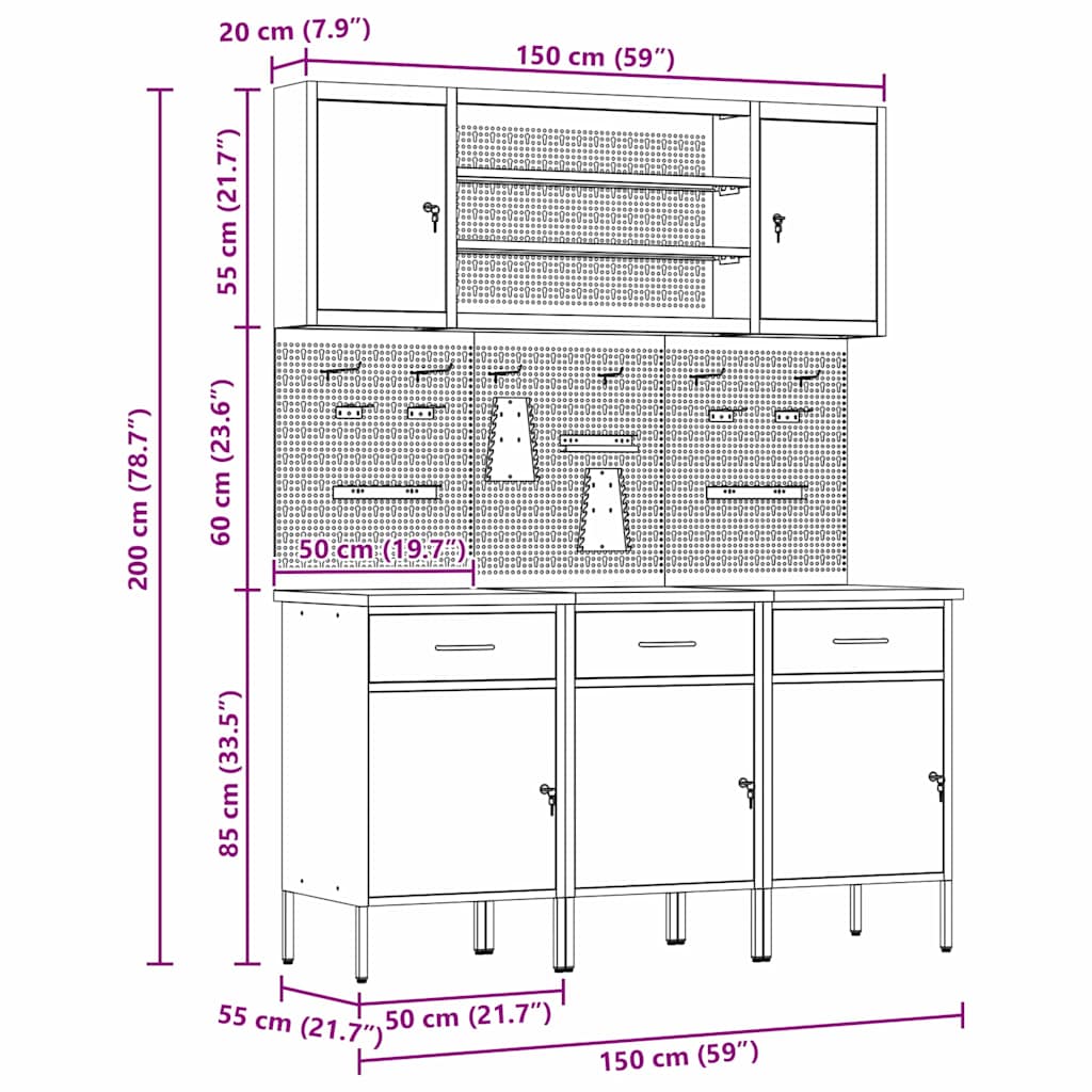 Dit moderne werkcabinet combineert stijl met functionaliteit, met zijn industriële look en stevige ontwerp. Perfect voor werkplaatsen, het maakt gebruik van engineering hout en staal in een unieke rechthoekige vorm. Deze kast helpt je om je gereedschap te organiseren en verbetert je werkervaring, of je nu een hobbyist bent of een professional. Het industriële ontwerp, geïnspireerd op lofts in de stad, geeft een stijlvolle uitstraling aan je werkplek met een mix van ruwe materialen.