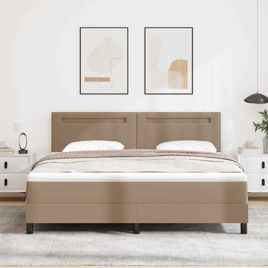 Dit Modern Boxspringbed combineert stijl en functionaliteit op een unieke manier, waardoor het een aantrekkelijk middelpunt in de slaapkamer is. Met een ontwerp met strakke lijnen en zonder teveel poespas, past het perfect in elke moderne ruimte en geeft het een frisse uitstraling aan je interieur. Bekleed met kunstleer en gevuld met zacht schuim, biedt het bed zowel een mooie look als fijn comfort, een geweldige keuze voor iedereen die zoekt naar de ideale mix van vorm en functie in hun slaapkamer.
