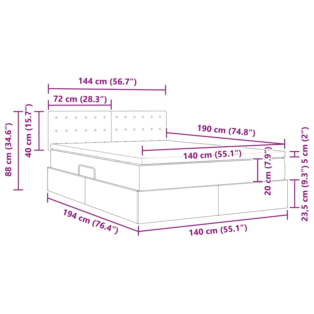 - Hoofdeinde maat: 144 x 5 x 88 Dimension_Unit (B x D x H)