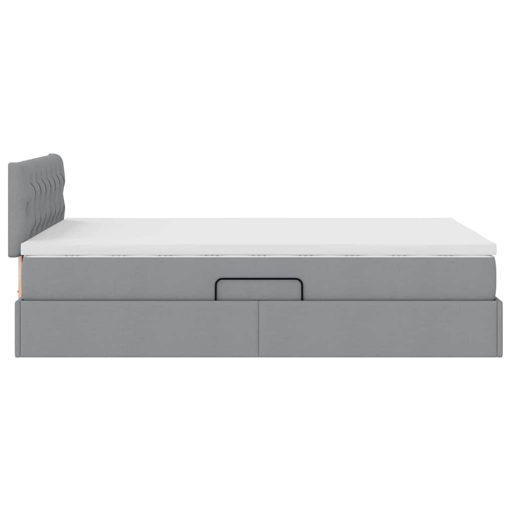 Dit Opbergbed met Matras is een stijlvolle en functionele aanwinst voor iedere slaapkamer. Met zijn strakke lijnen en minimalistische ontwerp, en het geweldige lattenbodem en matras, zit je goed voor comfort. Dit bed is perfect voor moderne interieurs en zorgt niet alleen voor een fraaiere uitstraling maar ook voor extra opbergruimte, speciaal voor wie efficiëntie belangrijk vindt zonder in te boeten op stijl. Dankzij het hydraulische liftsysteem is er veel ruimte onder het bed, waardoor je meer plek in je kamer hebt en je elegantie behoudt zonder rommel.
