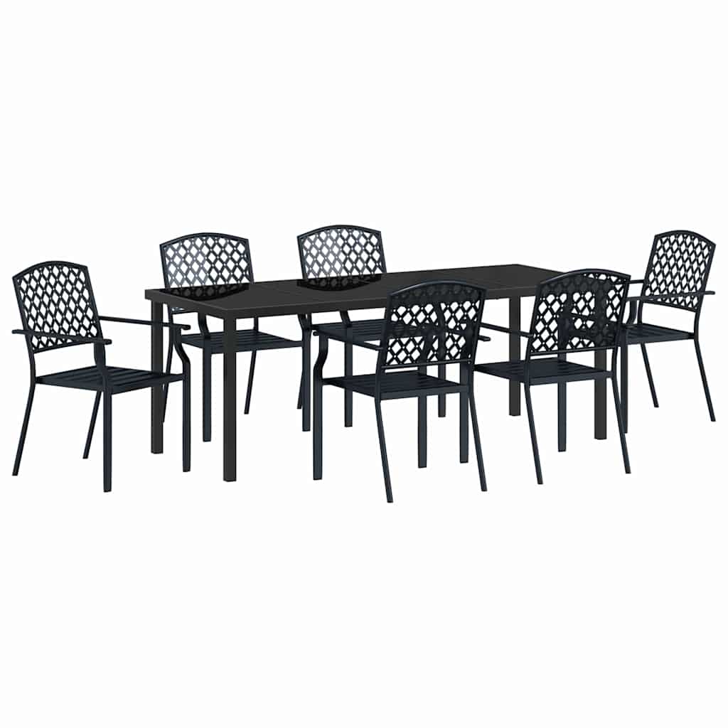 - Gepoedercoat stalen constructie: Zorgt voor een sterke en weerbestendige set die lang meegaat. De afwerking maakt het staal extra duurzaam, perfect voor buiten gebruik.