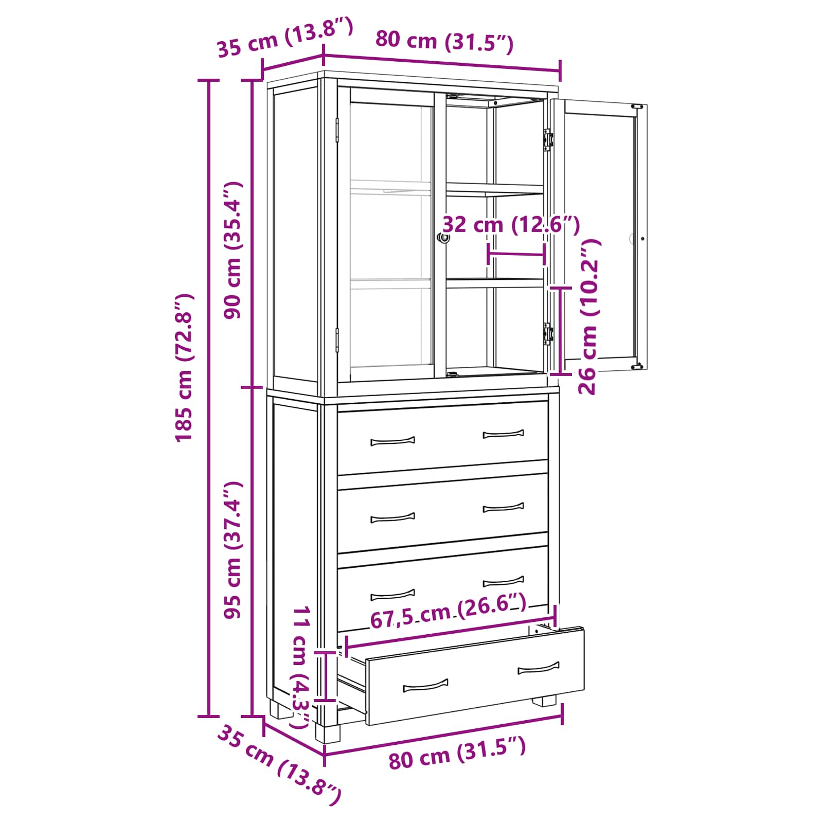 - Totale afmetingen: 80 x 35 x 185 cm (L x B x H)
