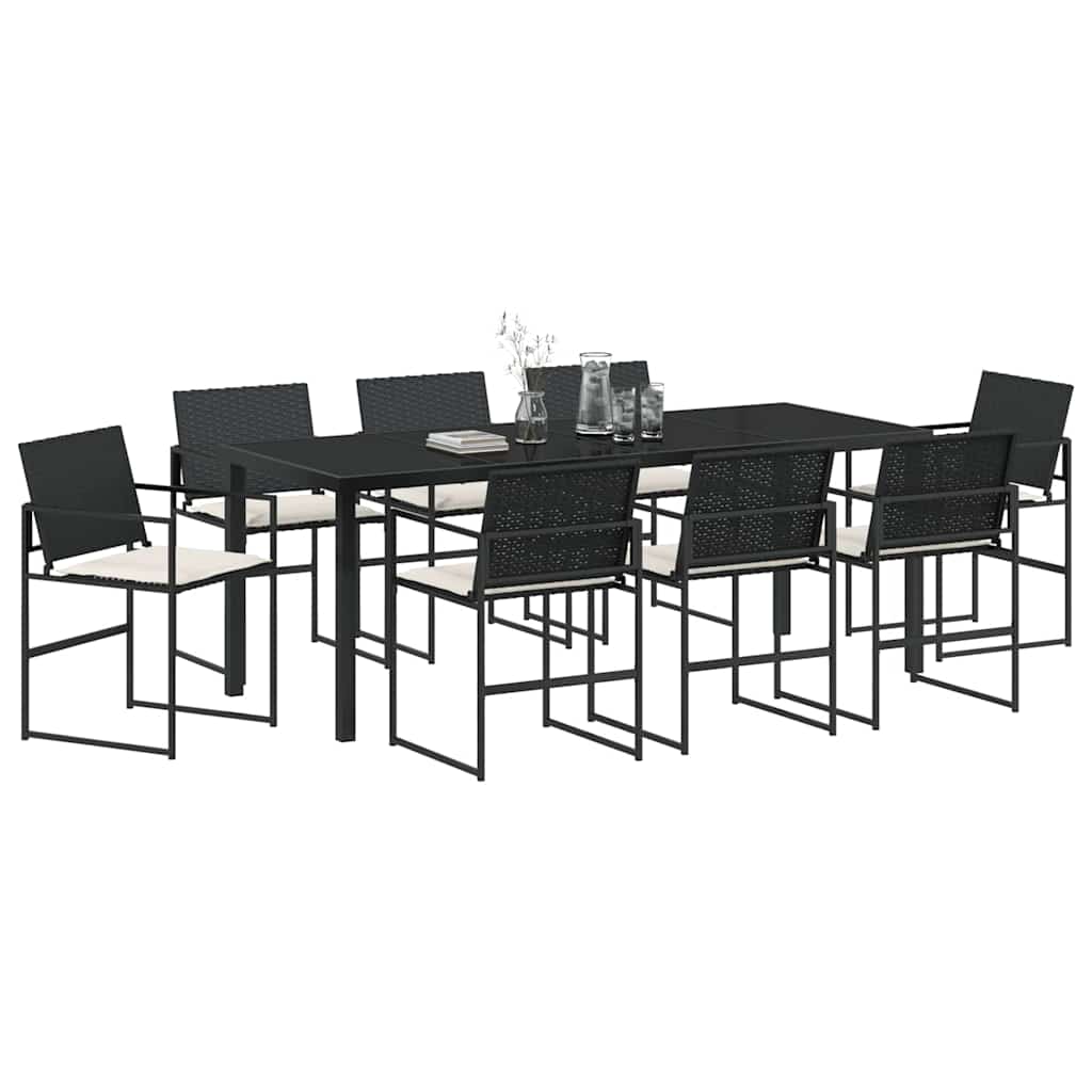 - Inclusief componenten: De dining set heeft afgewerkte rugleunen met een strakke look, verstelbare stoelen met ritssluitingskussens voor extra comfort, en stevige armleuningen die aan verschillende voorkeuren voldoen. Elk onderdeel is ontworpen voor gebruiksgemak.