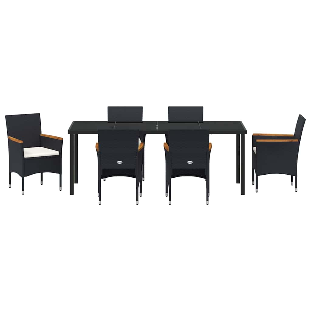 - Aangesloten componenten: Met een mooi achterontwerp, stevige acaciahouten armleuningen en vierkante, gepoedercoat stalen poten, zorgt deze eetset voor stijl en functie. Elk onderdeel voegt iets unieks toe aan de uitstraling en prestaties van de set.