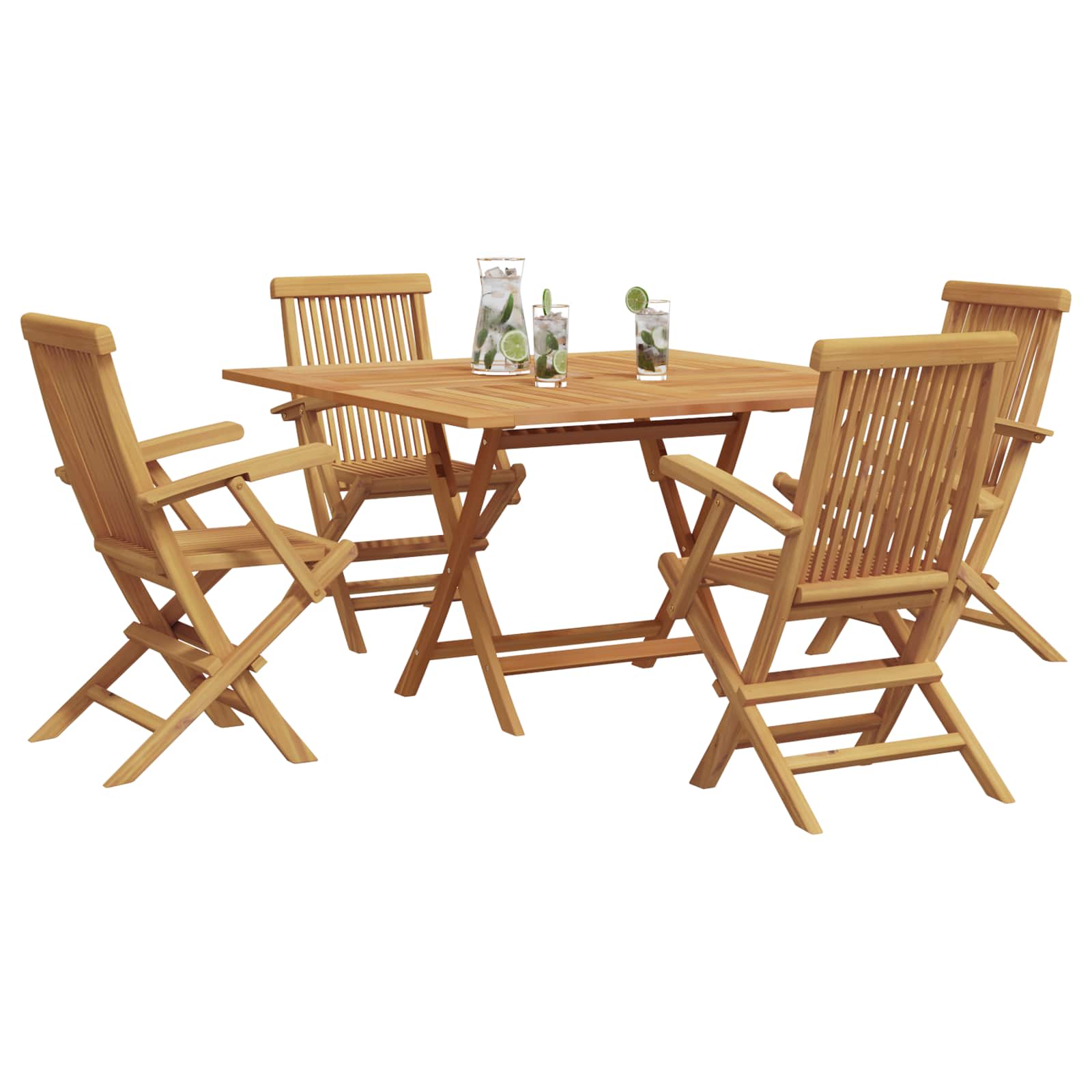 - Opvouwbaar en ruimtebesparend ontwerp: Met een handig opvouwmechanisme kun je de set makkelijk opslaan en verplaatsen. Of je nu de meubels even aan de kant zet voor schoonmaak of ze tijdens de winter wilt opbergen, deze functionaliteit biedt ontzettend veel gemak, vooral in kleinere buitenruimtes.