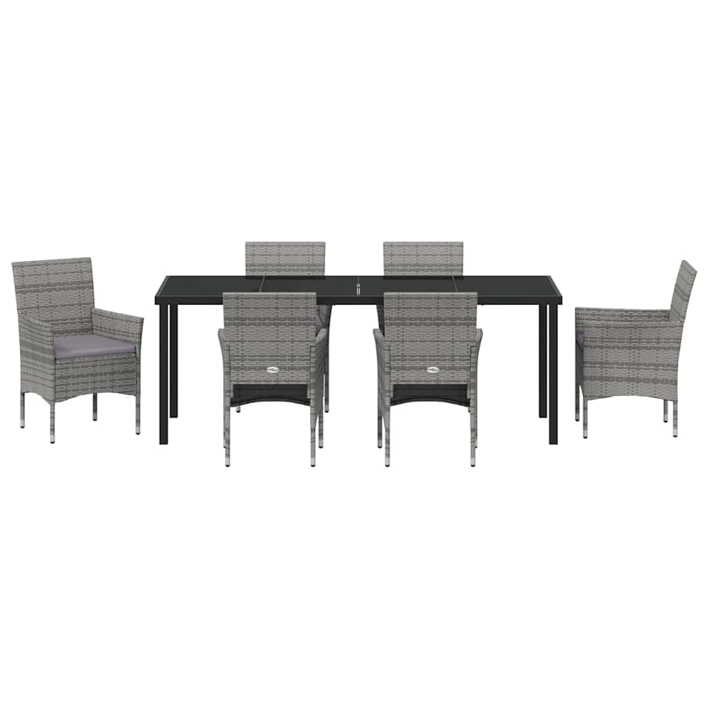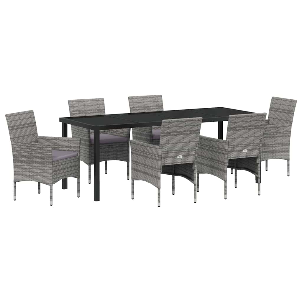 - Poly rattan rugleuning en armleuningen: De combinatie van poly rattan voor de rugleuning en armleuningen is stijlvol en comfortabel, met ergonomische ondersteuning. Poly rattan is UV-bestendig, waardoor de set zijn mooie look behoudt, zelfs in de volle zon.