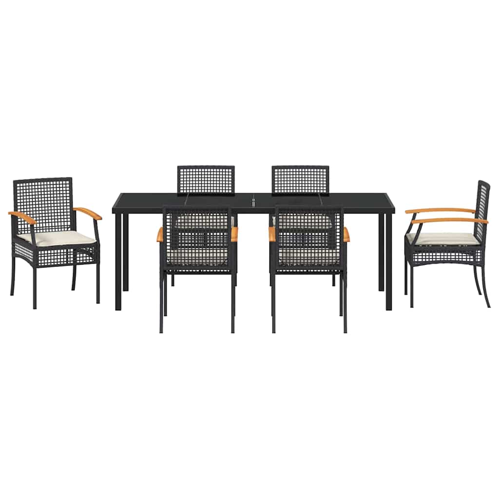 - Stevige Materialen: Deze geweldige mix van massief acaciahout zorgt ervoor dat je tuinset al je zomerse feesten weerstaat. De natuurlijke houtnerf voegt iets moois toe, en de poly rattan stoelen zijn comfortabel en trendy. Het zwarte glasblad geeft elke maaltijd of bijeenkomst een extra vleugje klasse.