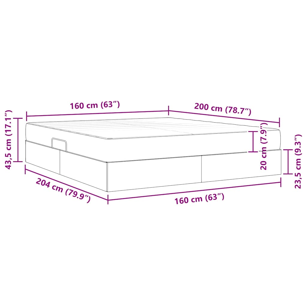 - Totale afmetingen: 204 x 160 x 43,5 cm (L x B x H)
