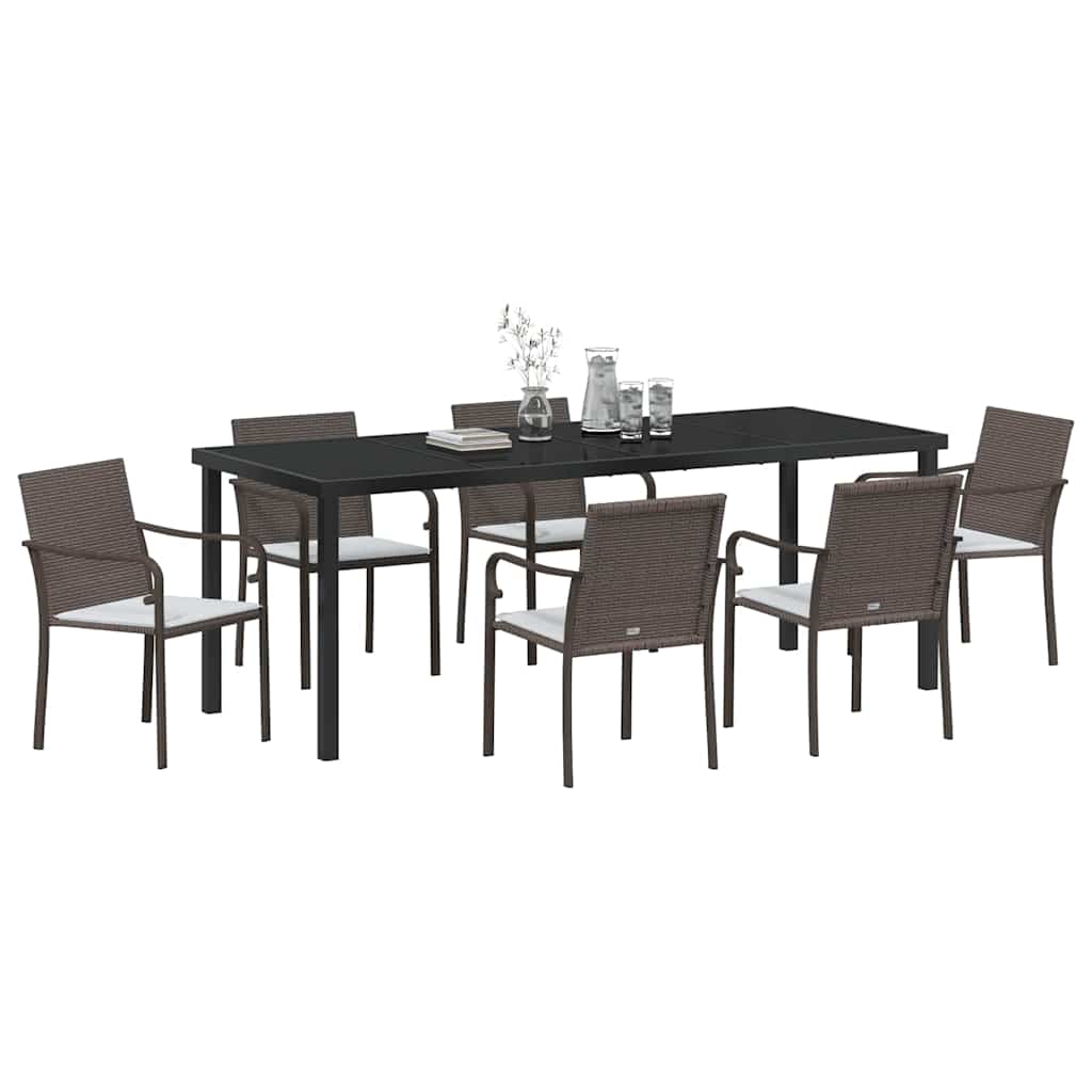 De moderne tuin eet set is je ideale maatje voor buiten dineren. Met een strakke, hedendaagse look en mooie lijnen, is deze set een mix van eenvoud en functionaliteit. Perfect voor het organiseren van bijeenkomsten in de bloeiende lente of warme zomer, deze set maakt je tuin nog mooier. De poly rattan zorgt voor een leuke uitstraling met een fijne textuur, ideaal voor fans van buiten dineren.