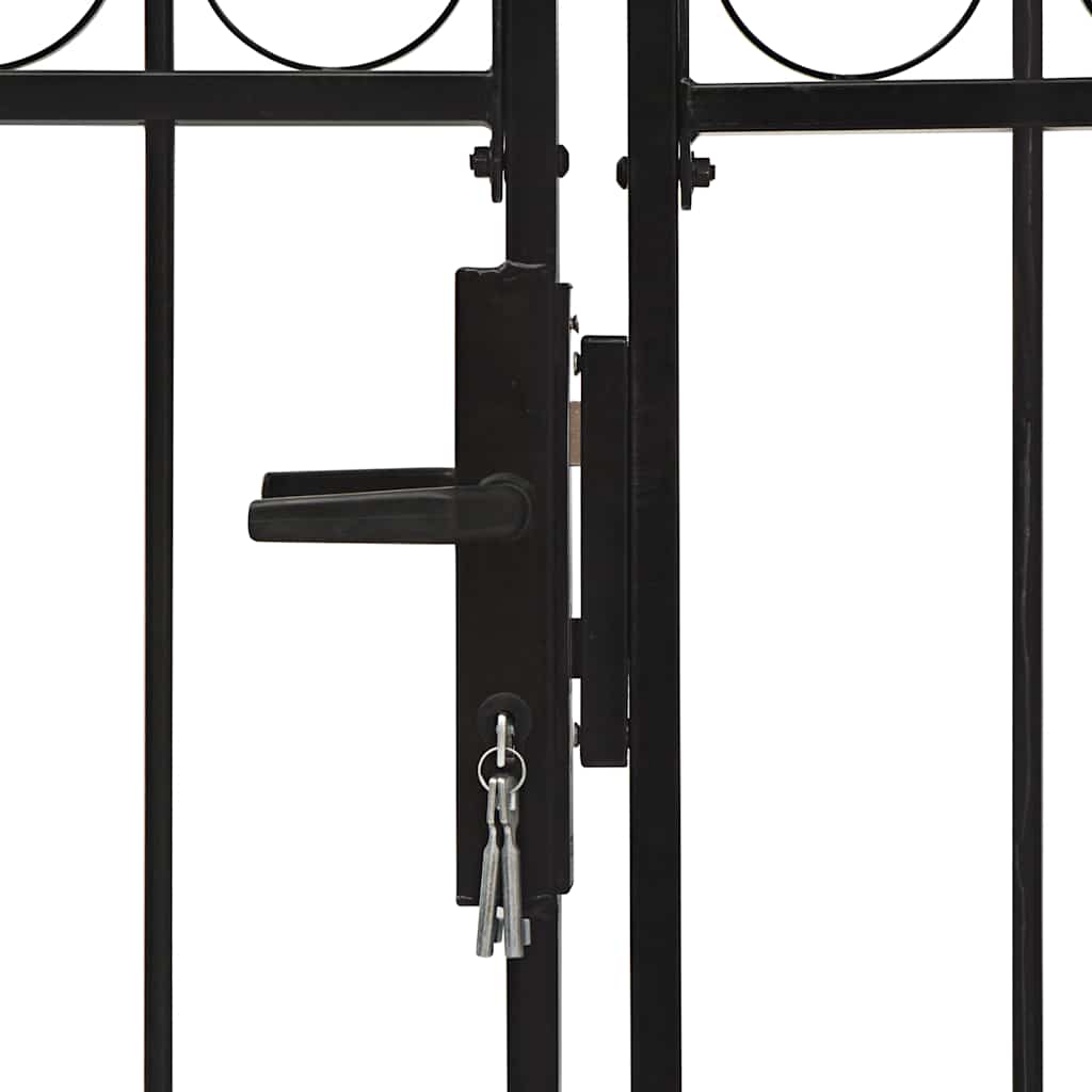 Met zijn elegante, boogvormige topontwerp en sterke horizontale beugels om het frame te versterken, biedt onze tuinpoort veel veiligheid, terwijl hij tegelijkertijd een fantastische toegangspoort tot je terrein vormt. De poort is gemaakt van sterk gepoedercoat staal dat roest- en uv-bestendig is.
