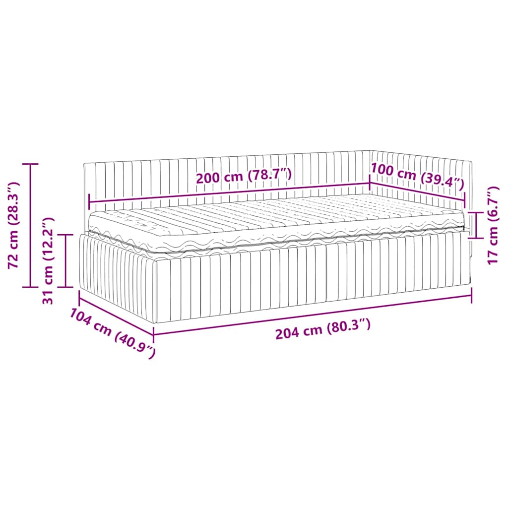 - 1 x Hoekbedframe: 204 x 104 x 72cm (LxBxH)