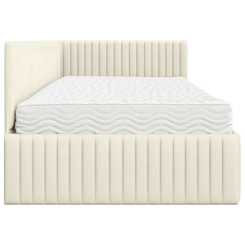 Dit velvet hoekbed met matras is een perfecte mix van stijl en functionaliteit, gemaakt om iedere slaapkamer op te fleuren. De moderne uitstraling met een fluwelen afwerking geeft een luxe gevoel. De hoekige vorm en het zachte hoofdbord passen goed in moderne ruimtes. Of je nu je slaapgedeelte wilt vernieuwen of een compleet nieuwe look wilt, dit bedframe biedt zowel comfort als stijl, ideaal voor een geweldige woonervaring.
